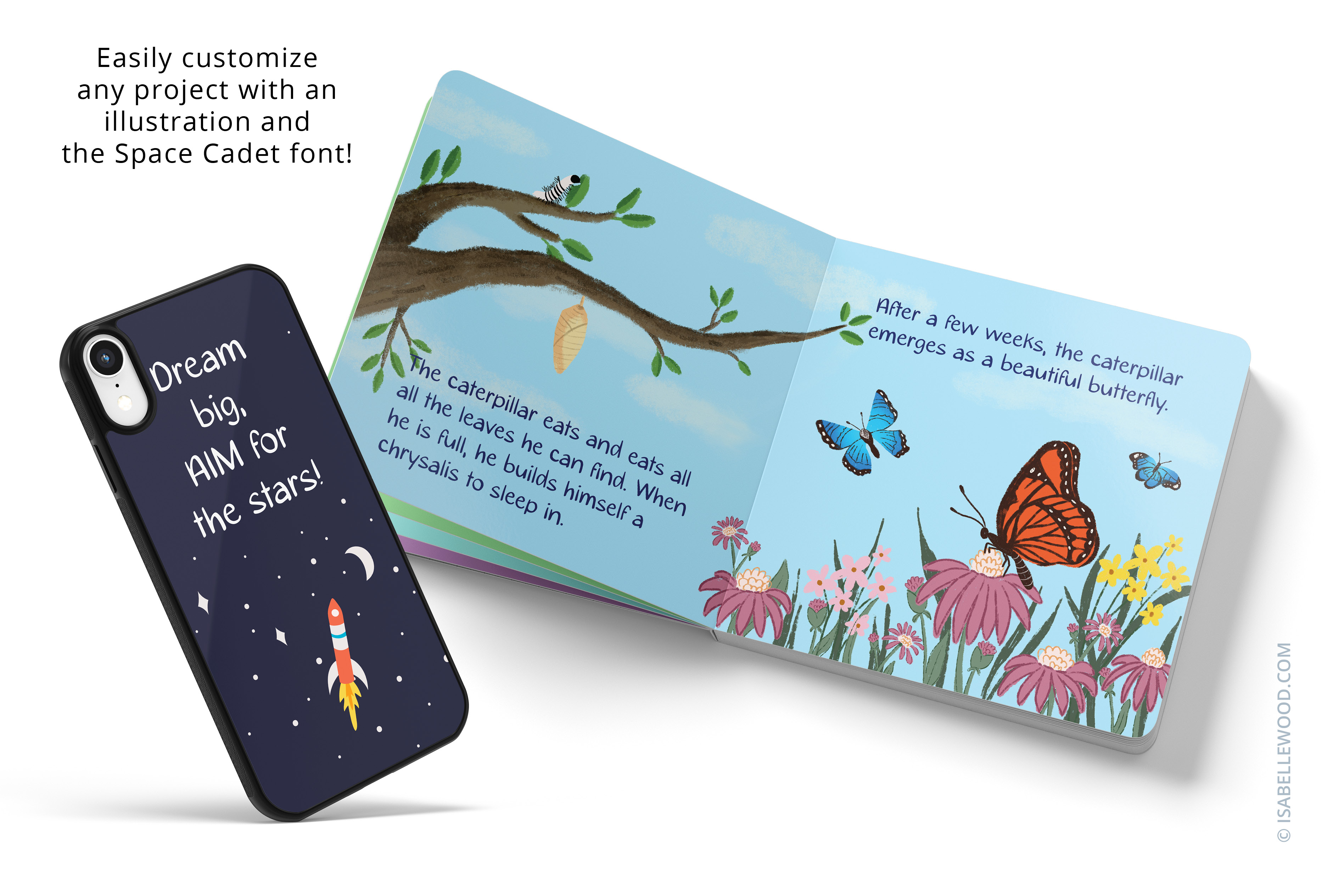 This hand drawn font will add a fun, whimsical feel to any project! It was created as part of the Space Adventure Illustration kit but if you just want the font, this is the place to get it.